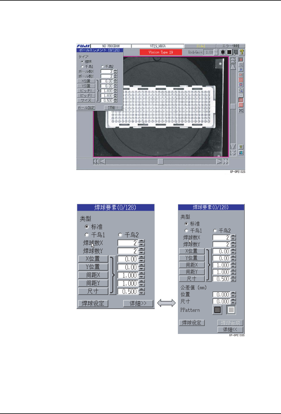 5. MDW/PDW SYS-XP243-4.0S 322 XP-242E/243E 系统手册 引脚要素编辑模式 引脚要素的编辑 操作 , 除去 「Parts Positio nning Mode」 的设定, 与 Vi sion Type20、 100 相同。 详细请参考 " 5.4.5 用 Vision Type 20 编辑 "。 在 Vi sion Type1 9的[引 脚 要 素]输 入 对 话 框 中 , 设…