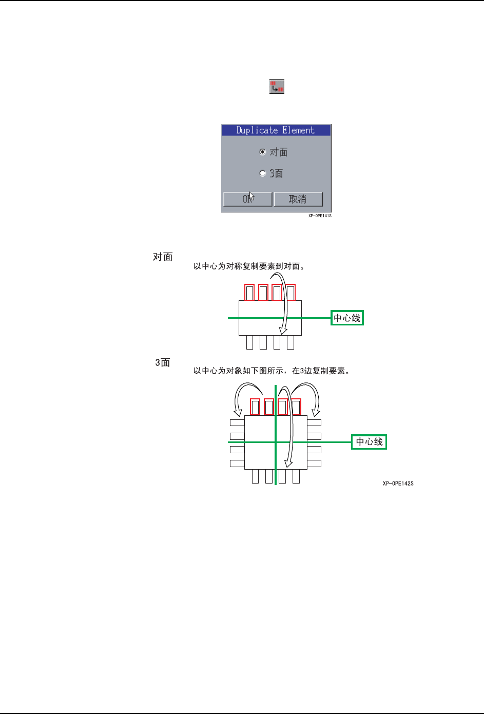 SYS-XP243-4.0S 5. MDW/PDW XP-242E/243E 系统手册 339 由要素手柄进行手工输入 1. 按下下图,进入引脚要素模式。 已经输入有要素的时候, 单击要素 后显示出手柄, 在 [ 引脚要素 ] 对话框中显示出各个数值。 ·Side No . 可以变更选择中的要素的 Side 的号码。 (0 ~ 3) Side No 如下图所示以箭头的方向为基准。 ·引脚数 以一个要素为单位输入引脚数。 (1 ~ 128…