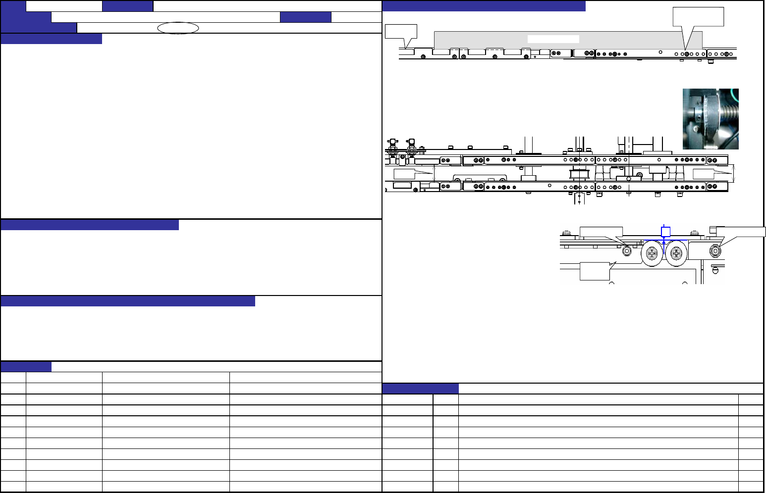 1.传送轨道的组装真直度(PWB导向器U) : 0.3mm以内