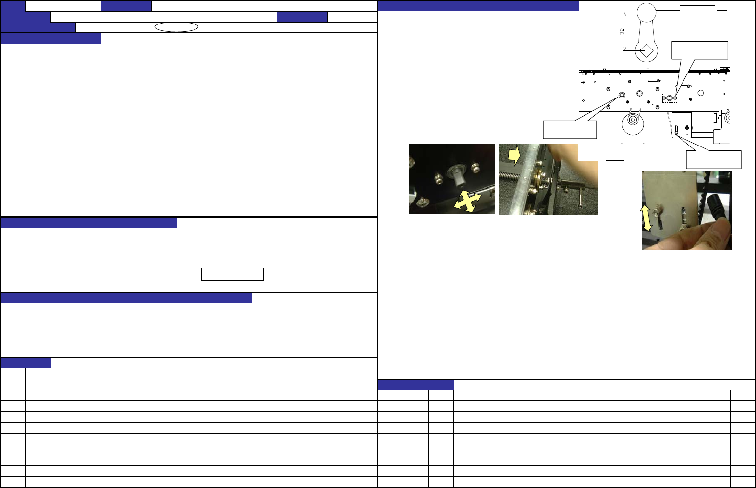 QA表 NO. 5 (1/2) NO. 5 (2/2) 机种 1.螺旋轴的螺母从反方向互相施加4.9N的荷重时,螺母移动量在50μm以下。 2.螺旋轴的螺母从反方向互相施加4.9N的荷重时,螺母移动量在100μm以下。 1.可动侧传送轨道减少松动,控制运转的振动。 2.可动侧传送轨道减少松动,控制运转的振动。 1.贴装元件时,可动侧传送轨道振动之后,基板振动,贴装质量变坏。 2.贴装元件时,可动侧传送轨道振动之后,基板振动,贴装质量变坏…