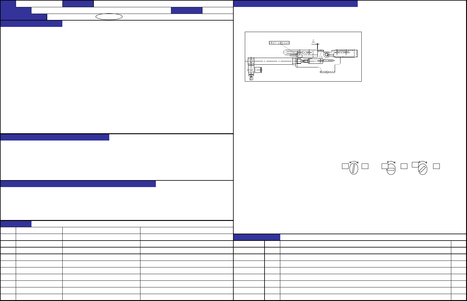 QA表 NO. 9 (1/2) NO. 9 (2/2) 机种 1.速度控制调整时,线全部拧仅螺丝,返回指定转动。 调整后用螺母固定。 1.速度控制打开度:A侧(安装在气缸)从全闭打开1圈。 2.止动板的动作应顺畅。 2.ON/OFF空气,观察止动板的动作。 止动板的支点部的粘合剂出来,说明润滑脂不足。 请注意止动销插到导向器长孔的情况。 1.让基板止动器以适当的速度动作。 2.维持基板止动器的动作速度。防止与其它部件相碰。 1.速度慢:…