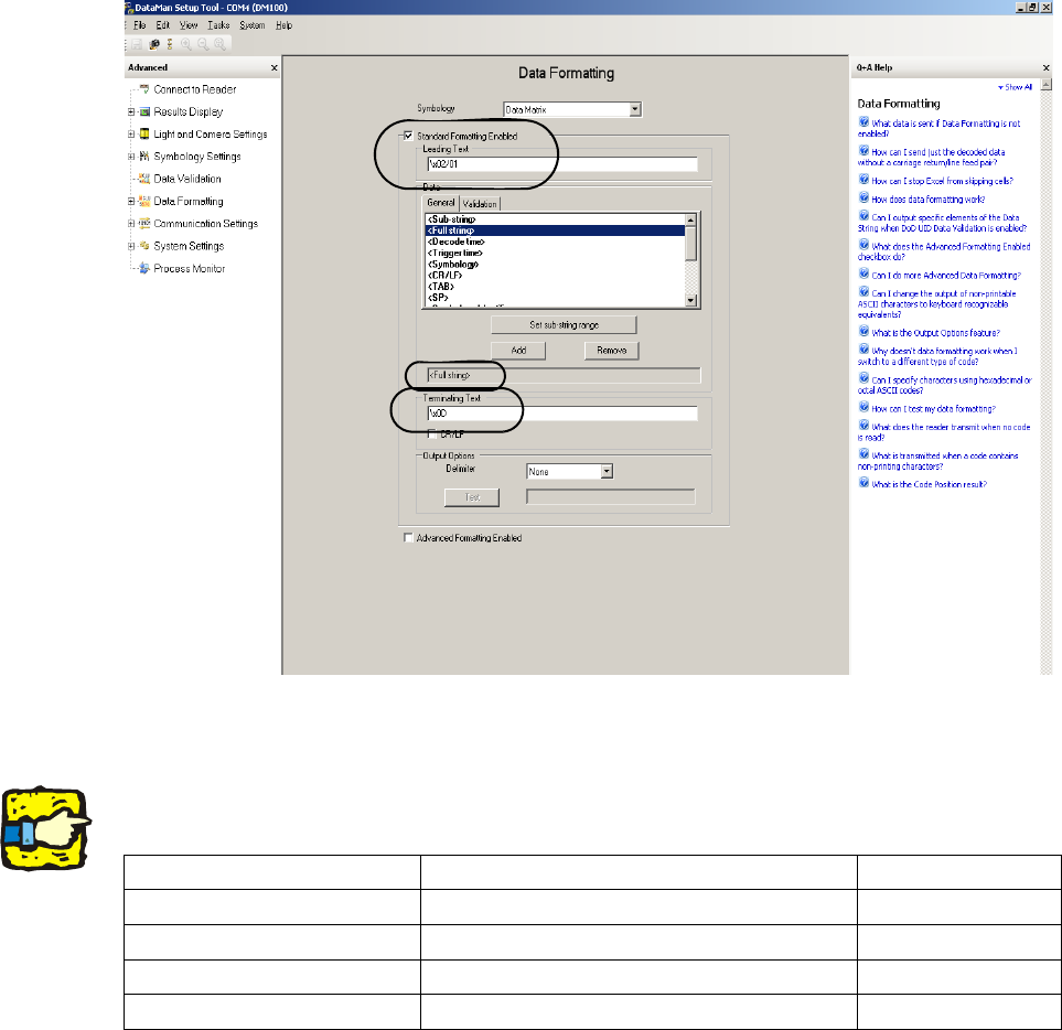 o Unter "Leading Text" wird folgende Zeile eingetragen: "\x02/0A".