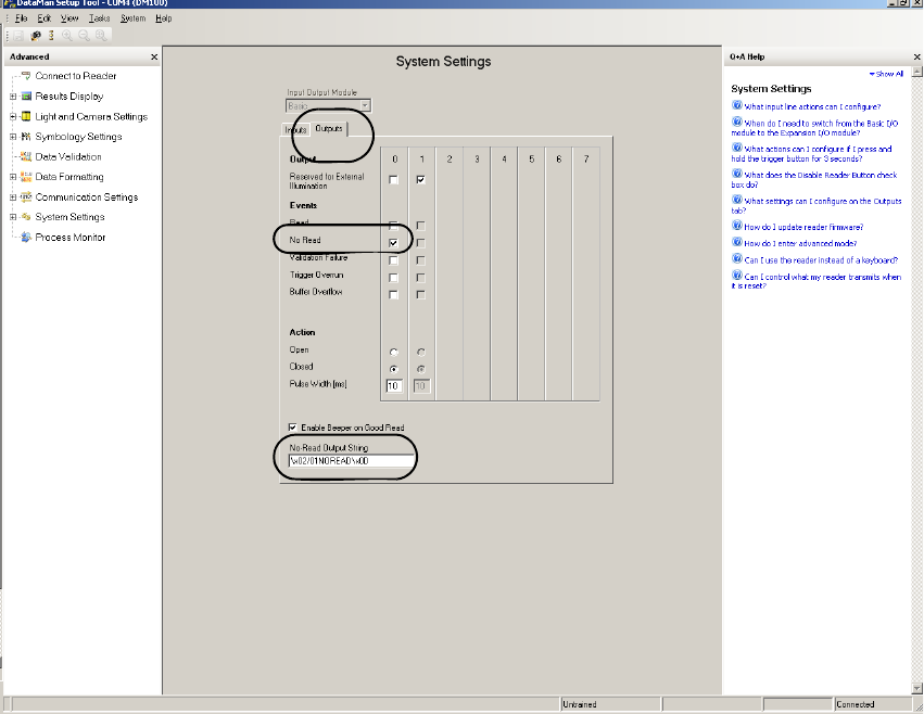Unter "No-Read Output String" wird folgendes eingetragen: