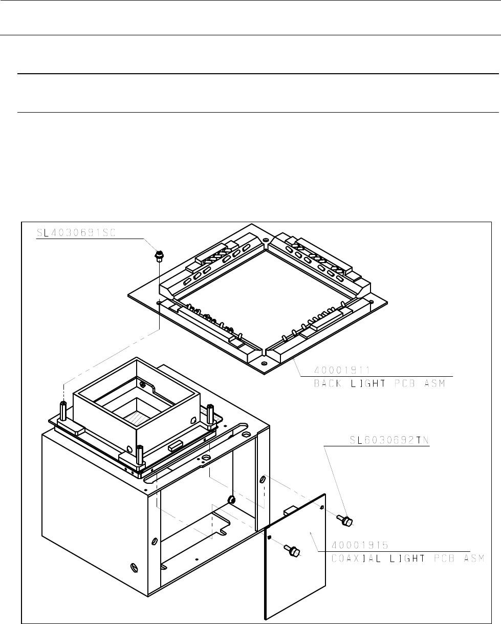 维修调整要领书 8-4 8-3 .各照明基板的更换 8-3-1 .透过照明基板、同轴照明基板 1) 同轴照明在卸下气缸的状态卸下并更换螺栓 ① 2) 透过照明请在卸下螺丝 ② 并进行更换。 请注意不要忘记电缆线 。 图 8-3-1 ① ② M3 × 6 螺丝组件 4 个 M3 × 6 螺栓 2 个