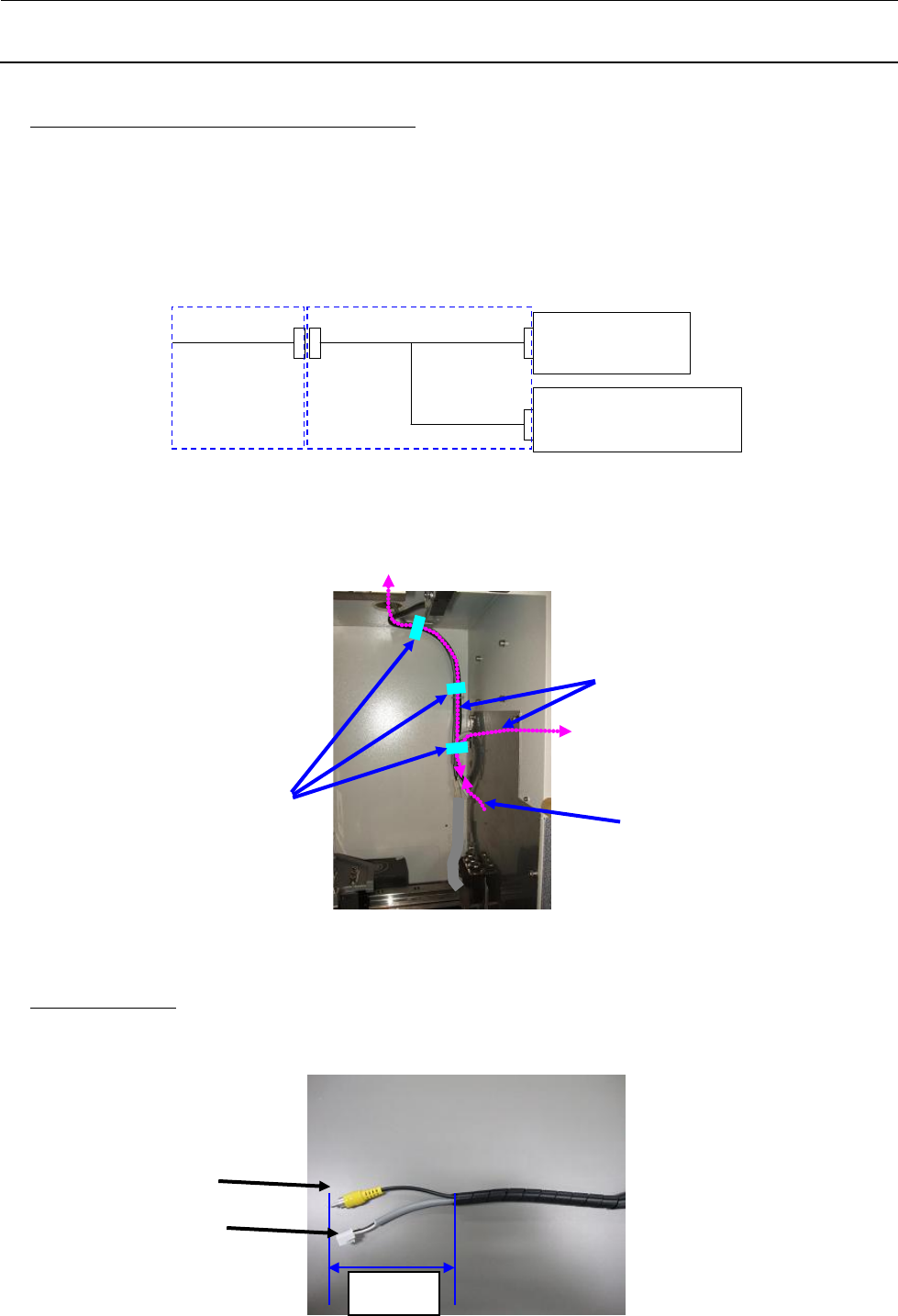 1) 请在图 13-1-4 的照片所示位置(离连接器前端 70mm)上,将监视器电源电缆和图像监视器电