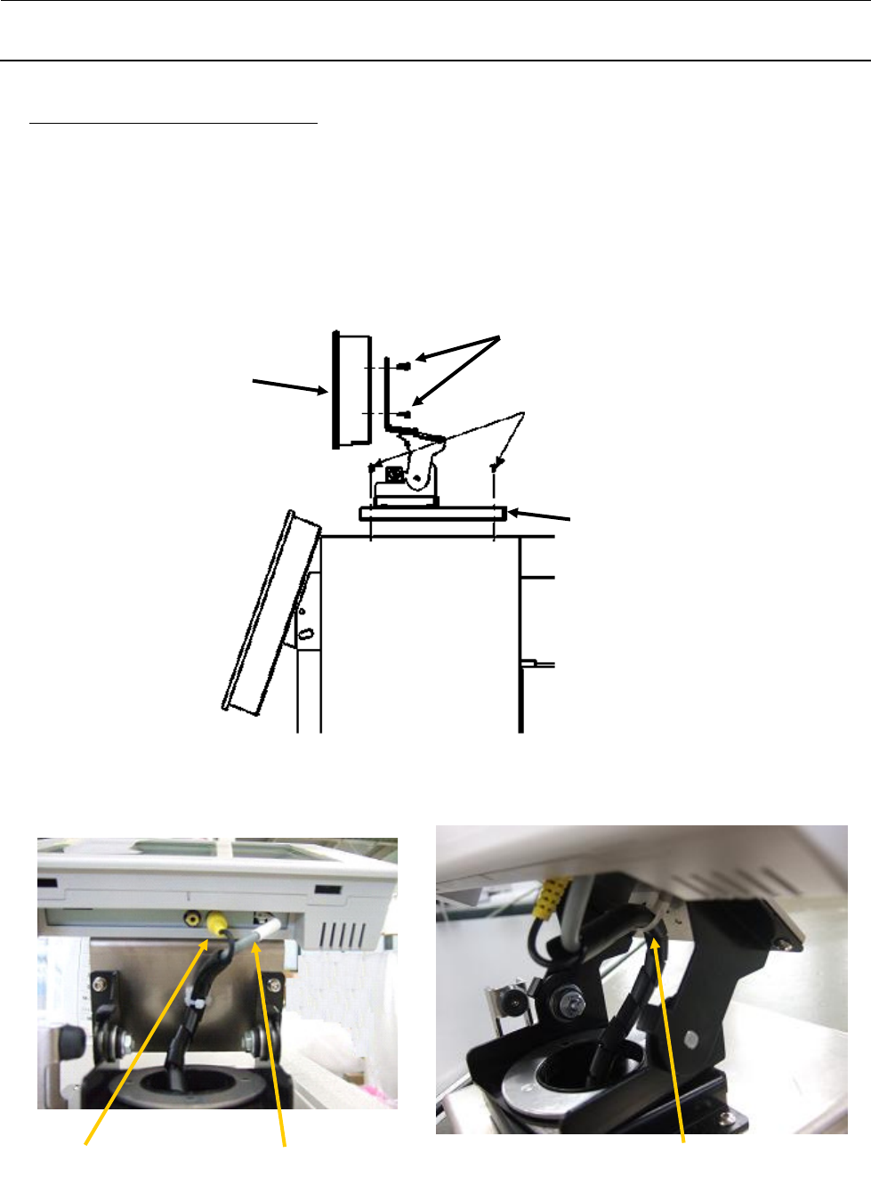 维修调整要领书 13 -3 ○ 图像监视器( LCD )托架的安装 1) 请用 ③ 的螺丝(共 4 个)安装图像监视器托架组件。 (图 13-1-5 ) 2) 请用 ④ 的螺丝(共 4 个)将图像监视器托架组件安装到图像监视器上。 (图 13-1-5 ) 3) 请将监视器电源电缆和图像监视器电缆与图像监视器连 接 。( 图 13-1-6 ) 4) 请用束线箍将电缆固定到固定底座上。 此时,请注意避免连接器的连接部受到负载 。( 图 13…