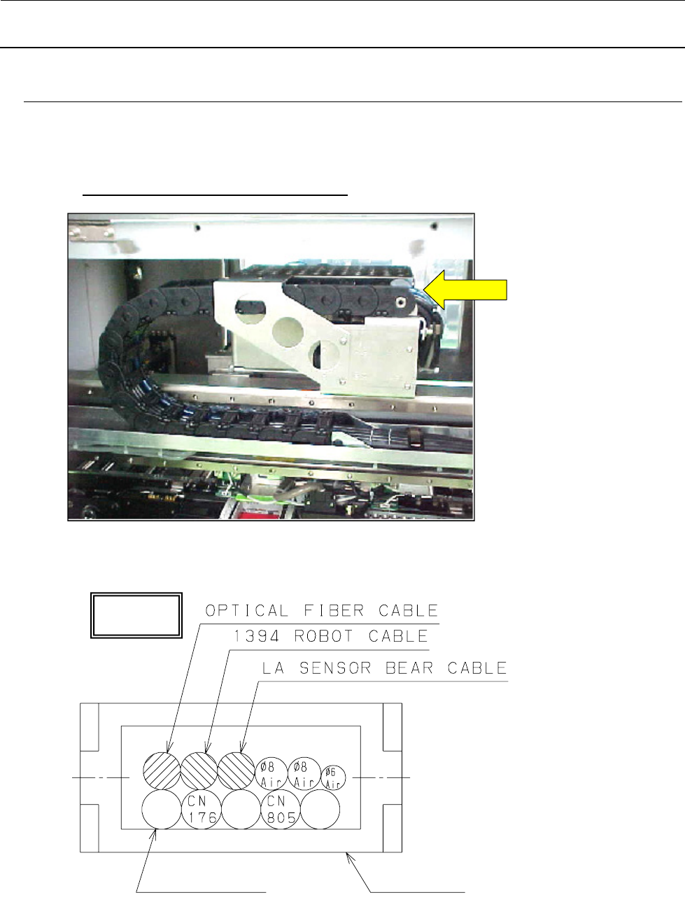 1)用割刀分离电缆线粘连部,使 40058384 和 40058385 可弯曲到与 Y 轴拖链电缆成 90°。
