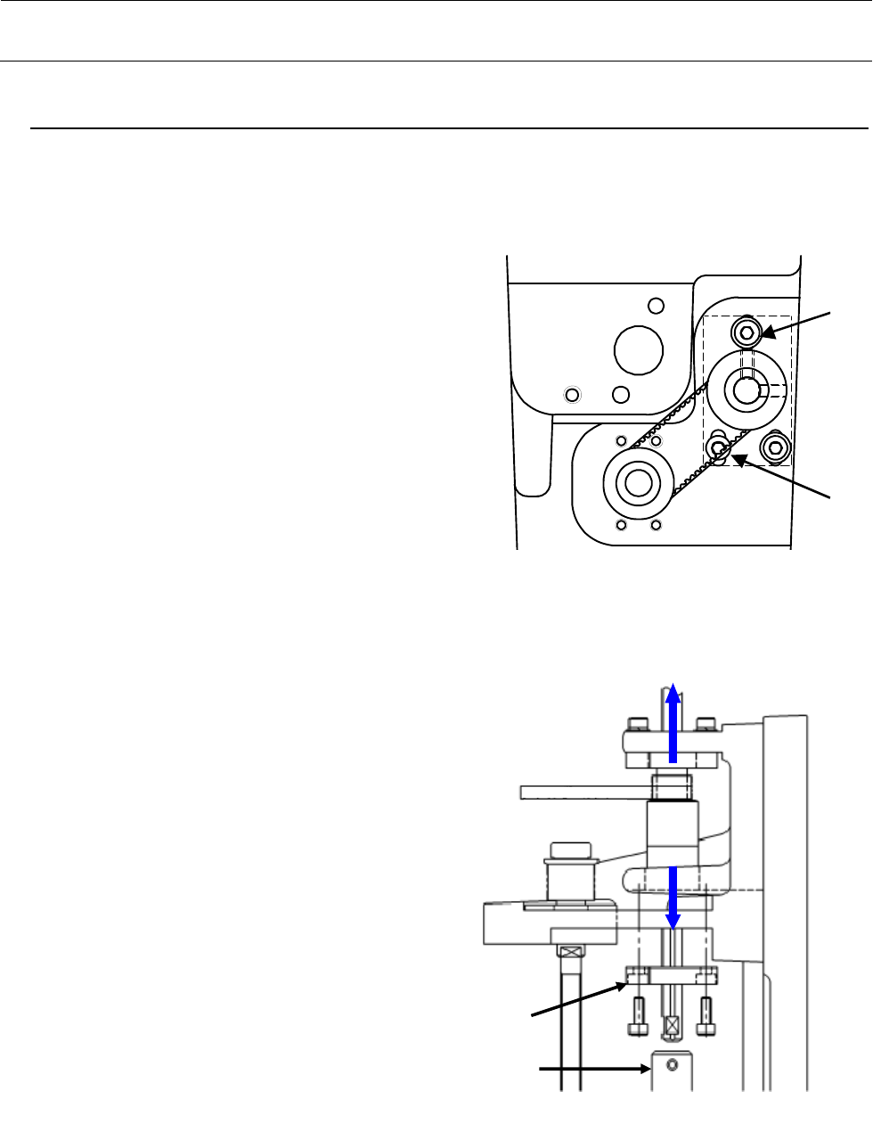 维修调整要领书 2-22 图2-7-4 2-7-2 . IC 贴装头 <同步皮带Z IC的更换> 更换了同步皮带Z IC之后, 需要重新输入Z轴原点的位置调整和Z轴高度有关的激光有关的MS 参数。(输入项目请参照 2-9 项。) 1) 松开右图①②的 3 颗螺钉。 2) 更换同步皮带Z IC。 3) 装配请按相反的步骤进行。 ※ 在 Z 马达安装螺丝 (3个)上涂上锁定漆2 42后,用转矩2.3 Nm 进行固定。 ※ 皮带张力,请按照2…