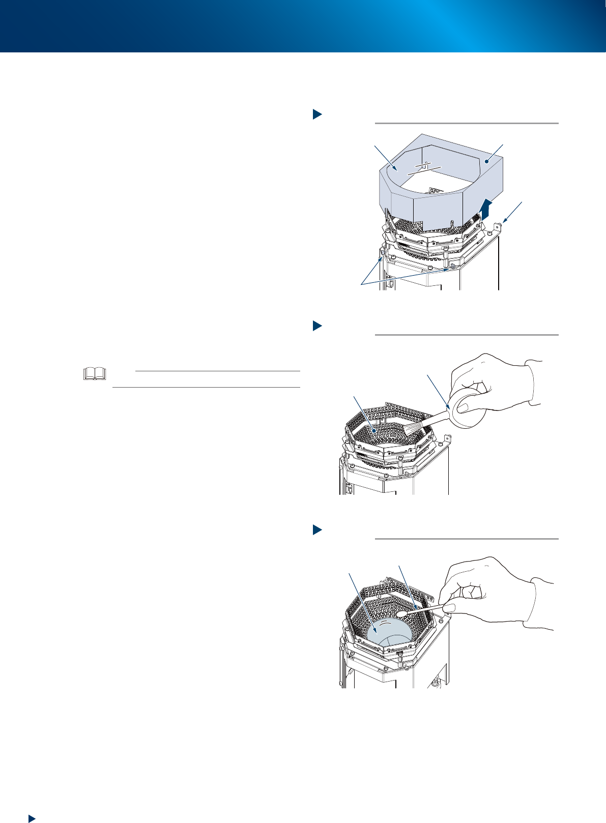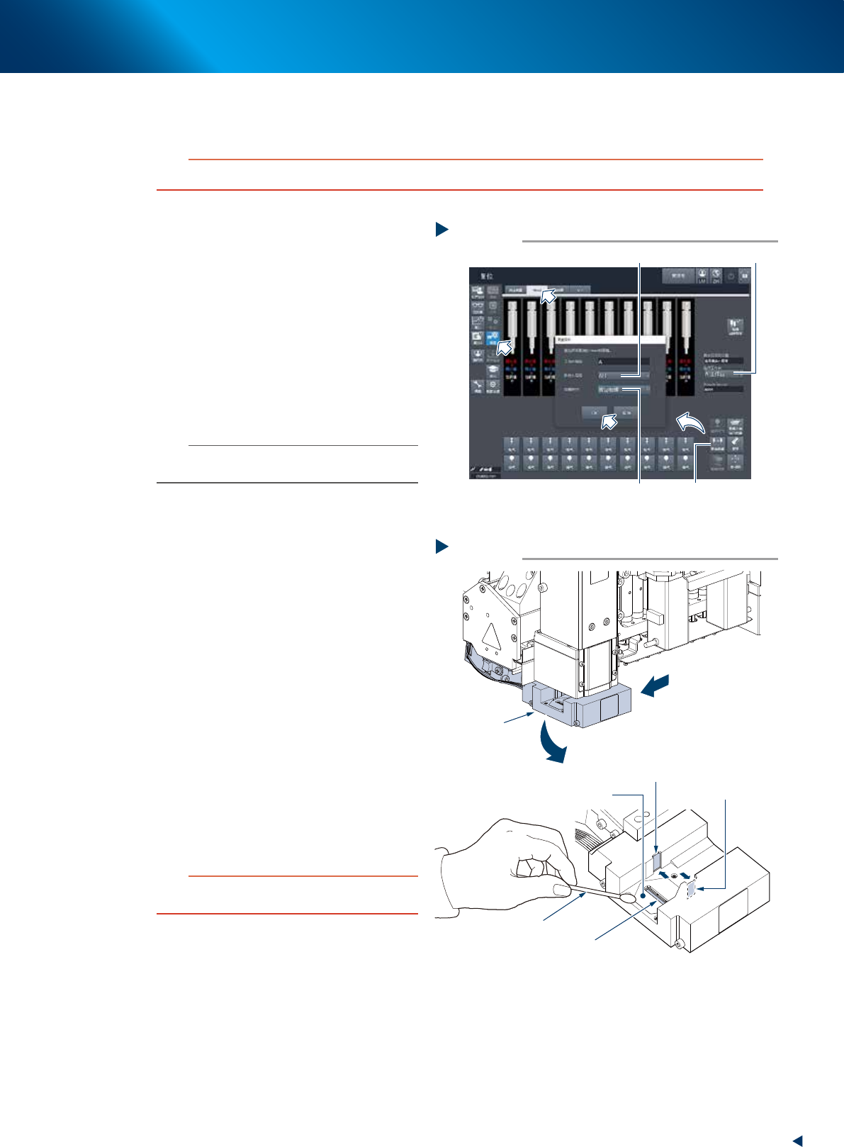 4. 6 个月 3-39 第 3 章 定期保养项目 4.1.3 扫描相机的清洁 ( HM 贴装头 ) 扫描相机的照明扩散板与棱镜装在相机左端的开口部。照明扩散板与棱镜会因积尘而脏污, 建议定期进行清洁。 c 注意 清洁时, 请勿对相机各部用力过大 。因为相机内 部使用了玻璃部件, 可能会被损坏。 1 拆下所有贴装头上的吸嘴。 ► 选配有吸嘴交换站时 1. 打开 [ 装置 ] -“Head”画面。 2. 从“选择工作台”下拉框中选择任意的…
