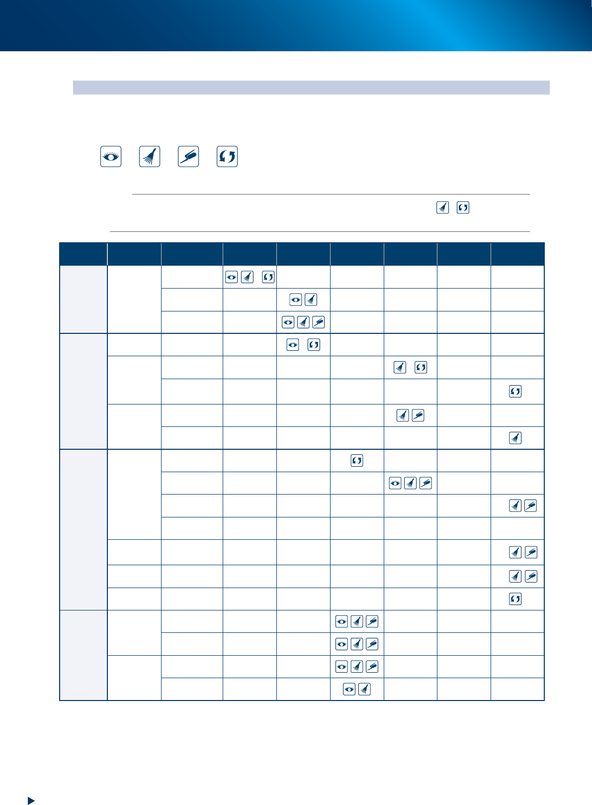 3. 维护保养项目一览 ii 前 言 3. 维护保养项目一览 █ 维护保养项目 维护保养作业的作业内容,以下图所示图例表示。 点检 清洁 加油 更换 n 要点 例 : 下表中“HM 贴装头单 元”→“真空电磁阀”→“滤芯”的显示是“每 3 个月”进行 “ ⇢ ”。 其含义为 : 每 3 个月清洁 1 次滤芯, 若脏污严重无法清除时,需更换。 部位 项目 对象 日常 每周 每月 每 3 个月 每 6 个月 1 年以上 各类型 贴装头通用 …