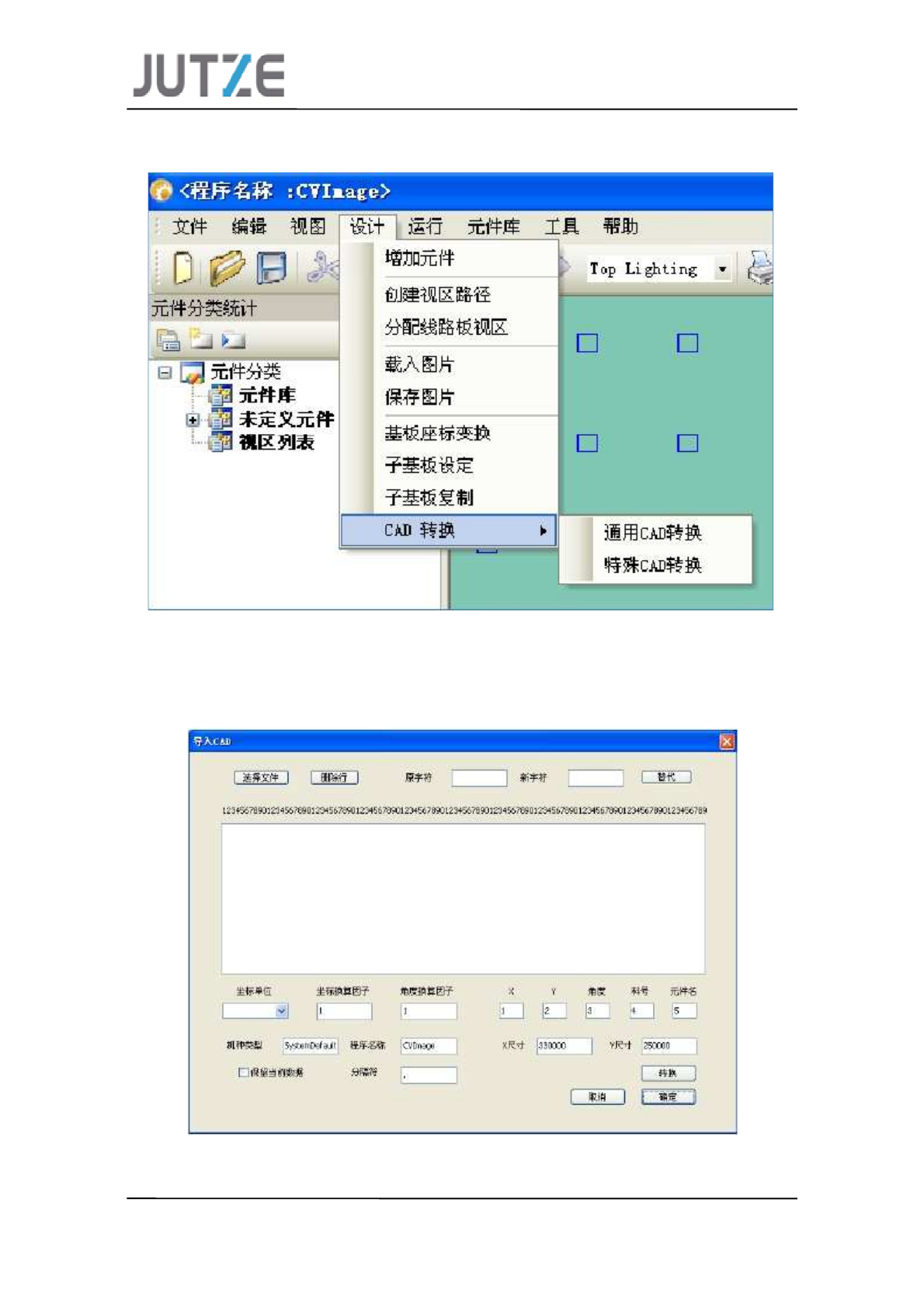(4) JUTZE 软件中采用 um 作基准单位,所以转换前需要确认