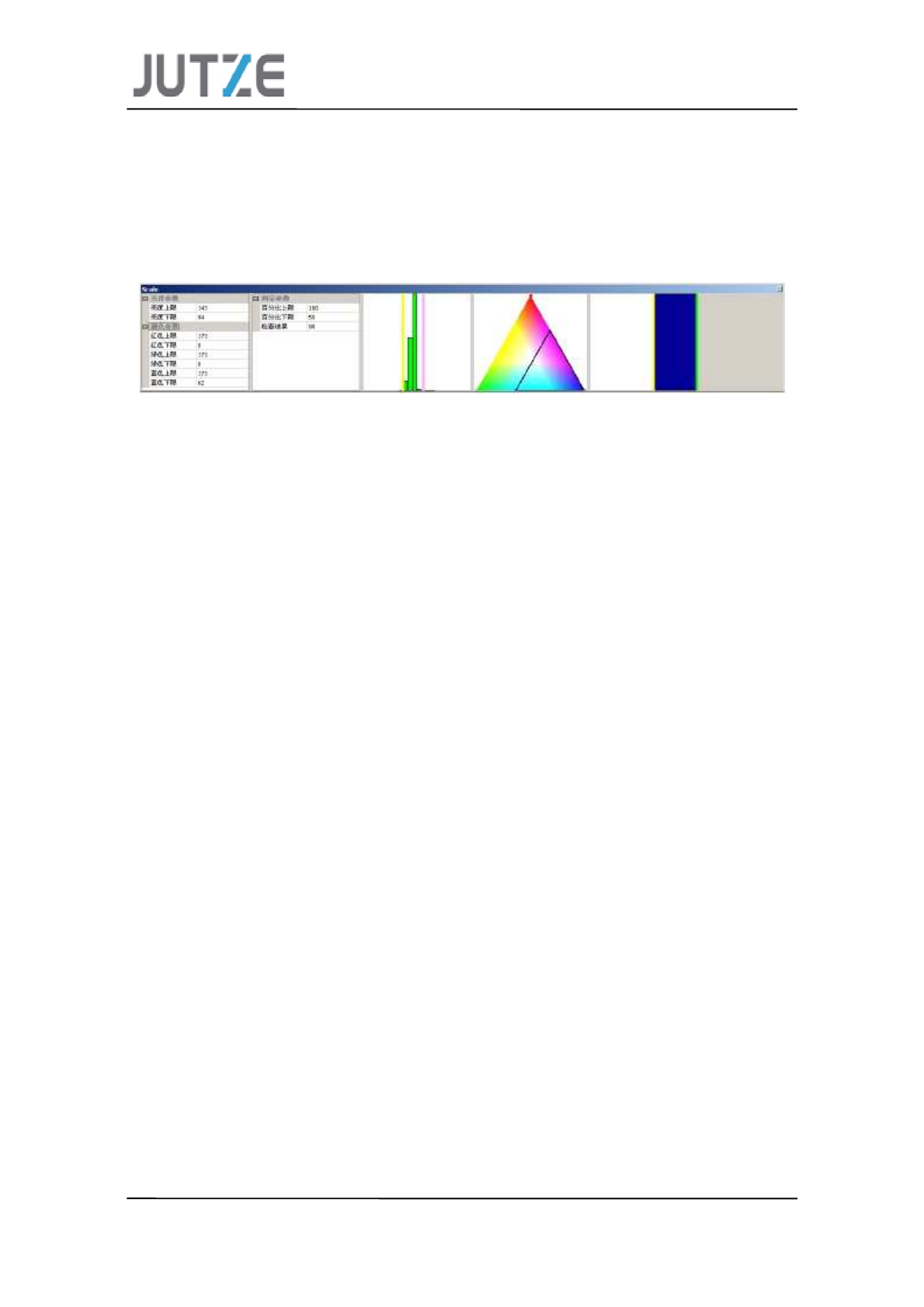 算法参数说明 Scale 判定参数: a) 百分比上限:设定百分比最 大值( 0~1 00 ) b) 百分比下限:设定百分 比最小值( 0~1 00 ) 计算方法: 计算参数: a) 亮度上限:设定最高亮度值 ( 0~173 ) b) 亮度下限:设定最低亮度 值( 0~173 ) c) 红色上限:设定红色最大值 ( 0~173 ) d) 红色下限:设定红色最小 值( 0~173 ) e) 绿色上限:设定绿色最大值 ( 0~173 ) f…