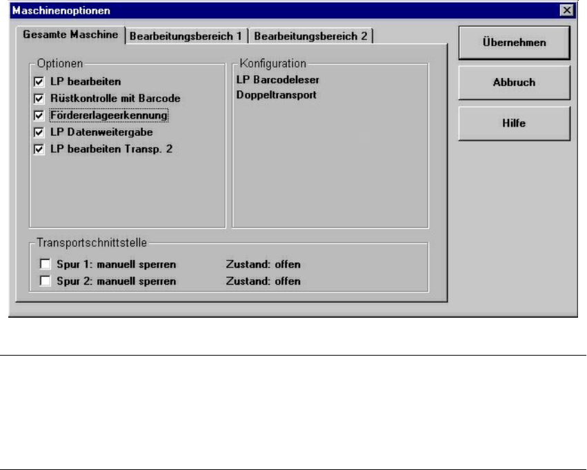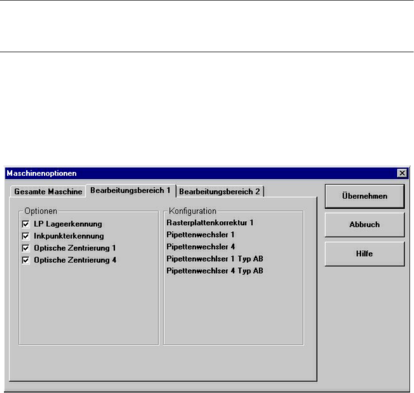 Es werden nur Maschinenoptionen angezeigt, die an der aktuellen Station konfiguriert sind.