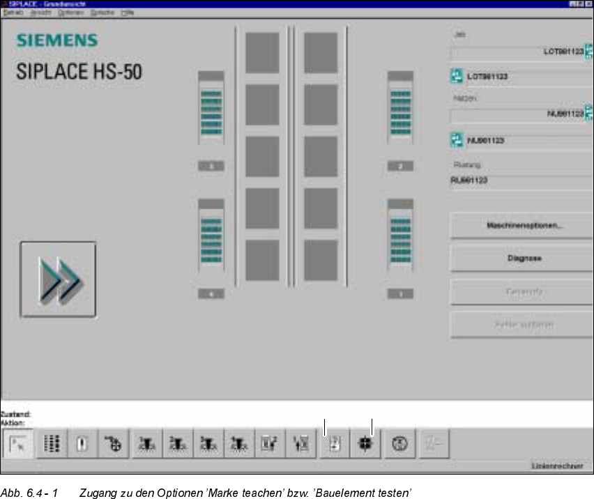 Software-Version 5.01 Ausgabe 01/99 6.4 Zugang zu den Optionen ’Marke teachen’ und ’Bauelement testen’