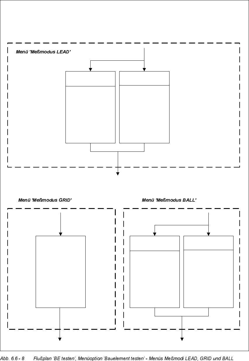 Betriebsanleitung HS-50 6 Visionfunktionen Software-Version 5.01 A usgabe 01/99 6.6 Bauelement testen 257 Menüoptionen 'Bauelement testen' Menü 'Meßmodi LEAD', GRID und BALL' Spitzenmessung übe…
