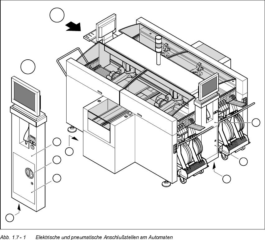 1 Einleitung Betriebsanleitung SIPLACE HS-50 1.7 Anschlußdaten des Automaten Softwareversion SR.501.xx Ausgabe 01/99 24 $ QVFKOXGDWHQGHV$ XWRPDWHQ ( OHN WULVFKHXQGSQHXPDWLVFKH$QVFKOXVWHOOHQDP $ XWRPDWH…