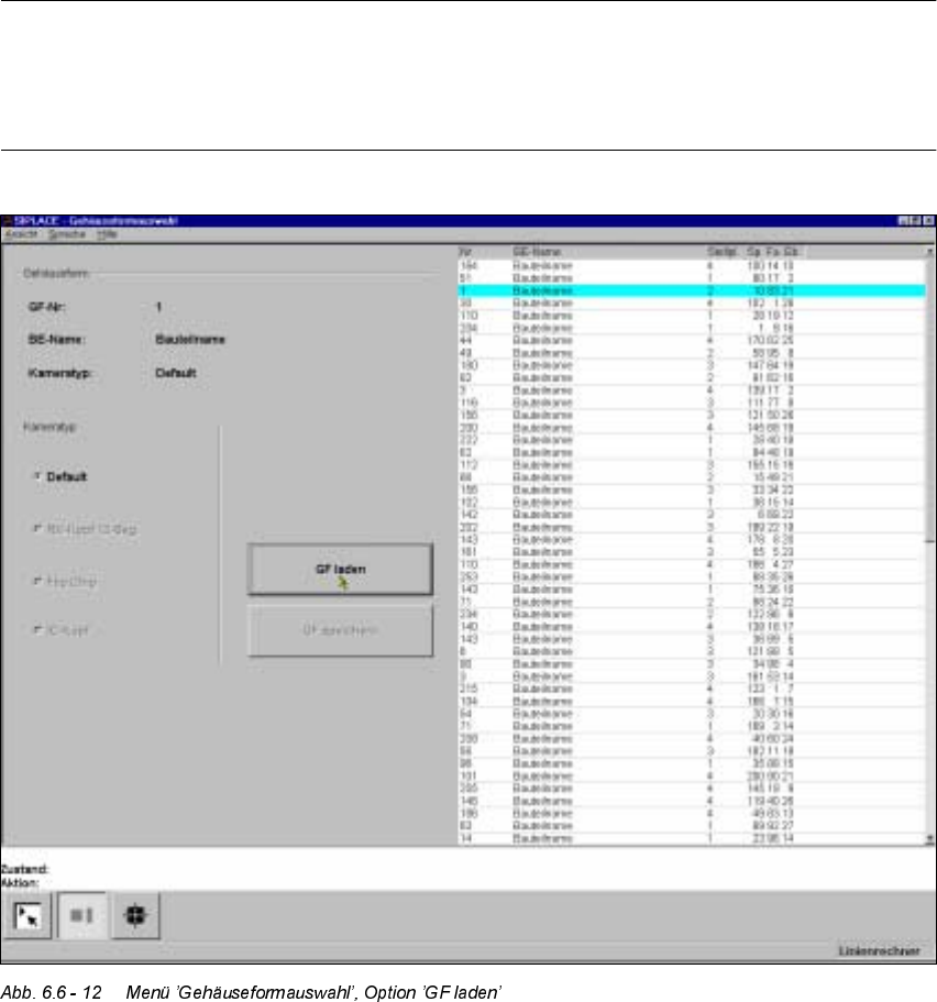 Å Klicken Sie auf die Schaltfläche ’GF laden’. Im Anzeigefeld ’Gehäuseform’ werden der Ge-