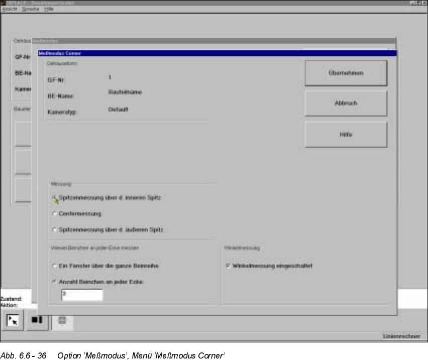 Nach Anklicken der Schaltfläche ’Einstellen’ im Meßmodus ’Corner’ erscheint das Menü ’Meß-