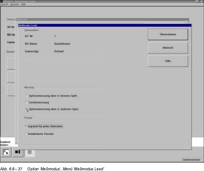 Nach Anklicken der Schaltfläche ’Einstellen’ im Meßmodus ’Lead’ erscheint das Menü ’Meß-