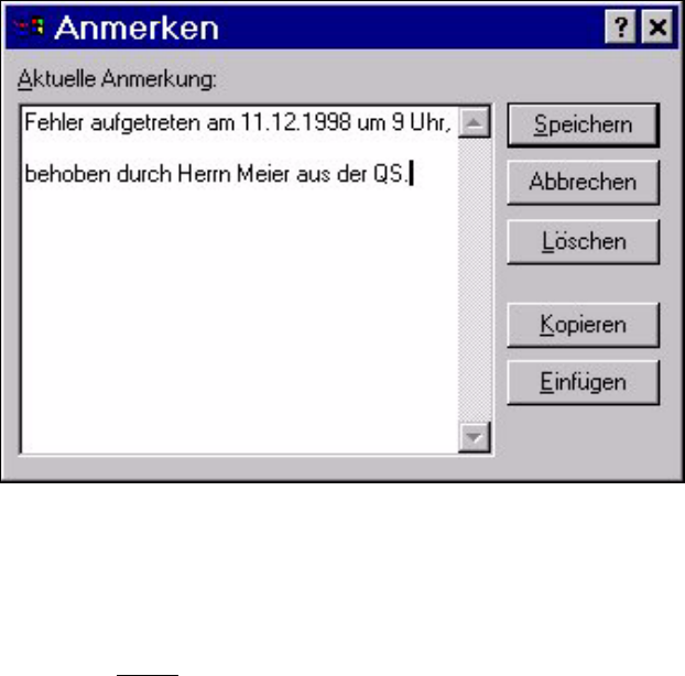 Das Dialogfenster mit der gespeicherten Anmerkung wird geöffnet.