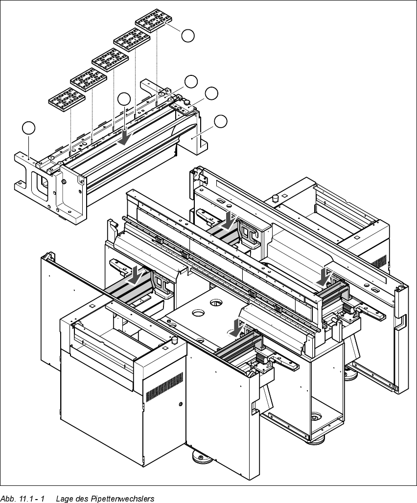 (3) Pipettenwechsler (4) Pipettenmagazine