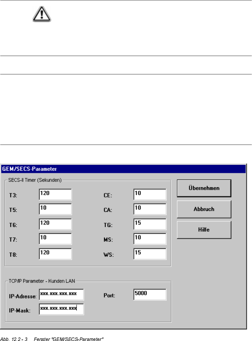 Å Klicken Sie die Schaltfläche 6(&63DUDPHWHU an, wenn Sie die SECS-Parameter än-