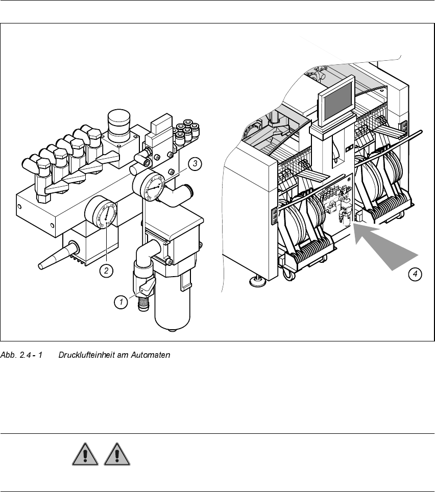zeigt Pos. 4 der Abbildung. Sie können die Druckluftzufuhr zum Automaten mit dem Absperr-
