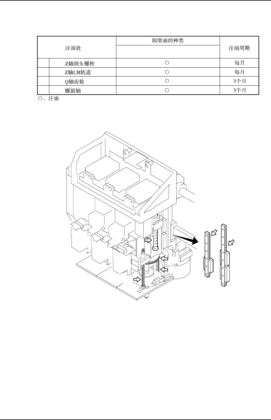 LM 导轨为无油型,故不需要注油作业。