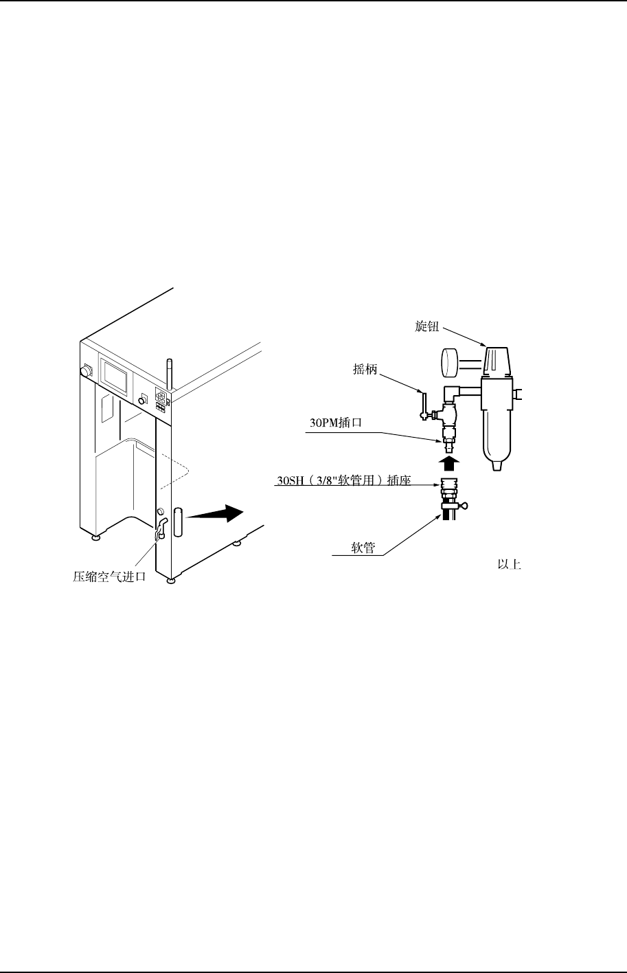 1. 将软管插到机器的压缩空气接入口。