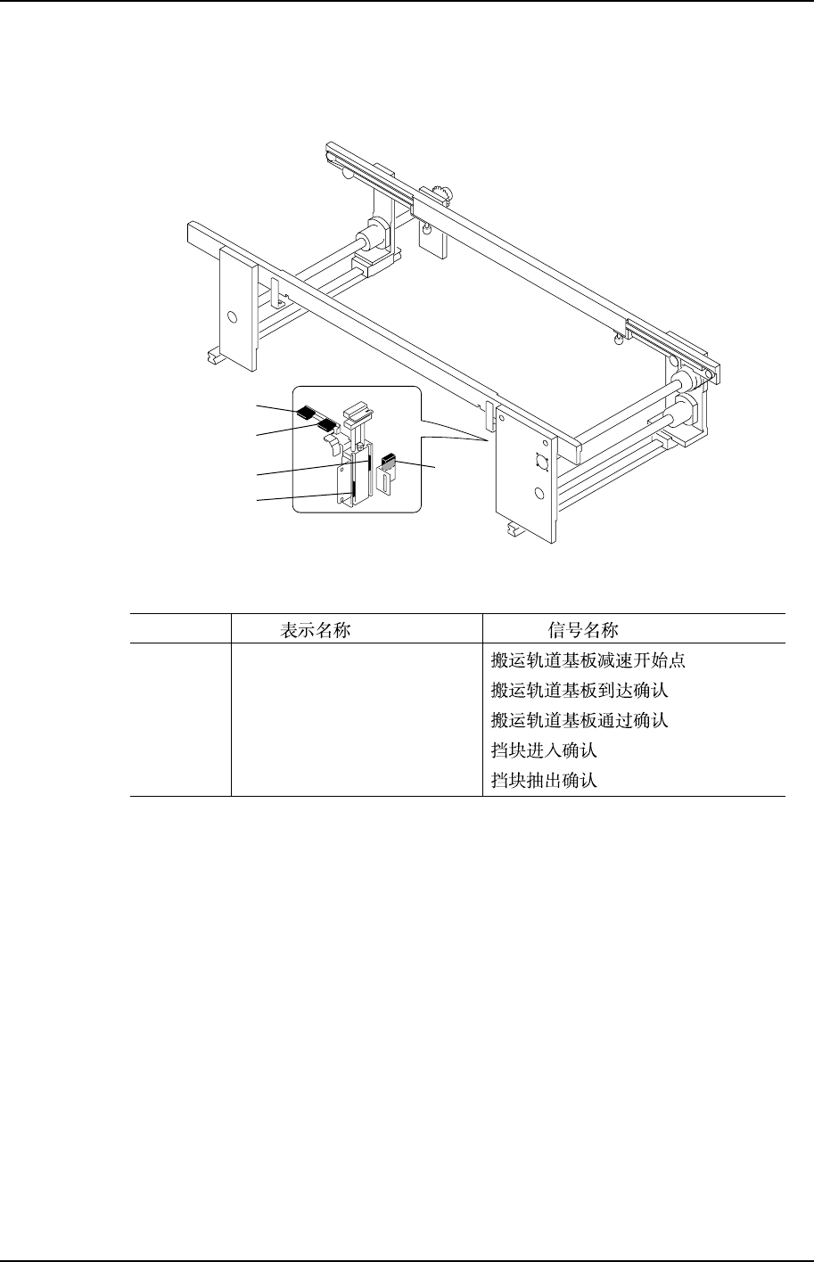 第 1 部 第 3 章 传感器配置图 Edition 1. 0 1-3- 5 QP-341E/35 1E-MM 机械手册 搬运轨道 搬运轨道 搬运轨道 搬运轨道 QPMN012CM X046 X047 X049 X048 X04A QPMNT05CM X046 X047 X048 X049 X04A CONV RDU POS CONV PCB CNF CONV PCB OUT CONV STP ON CONV STP OFF …