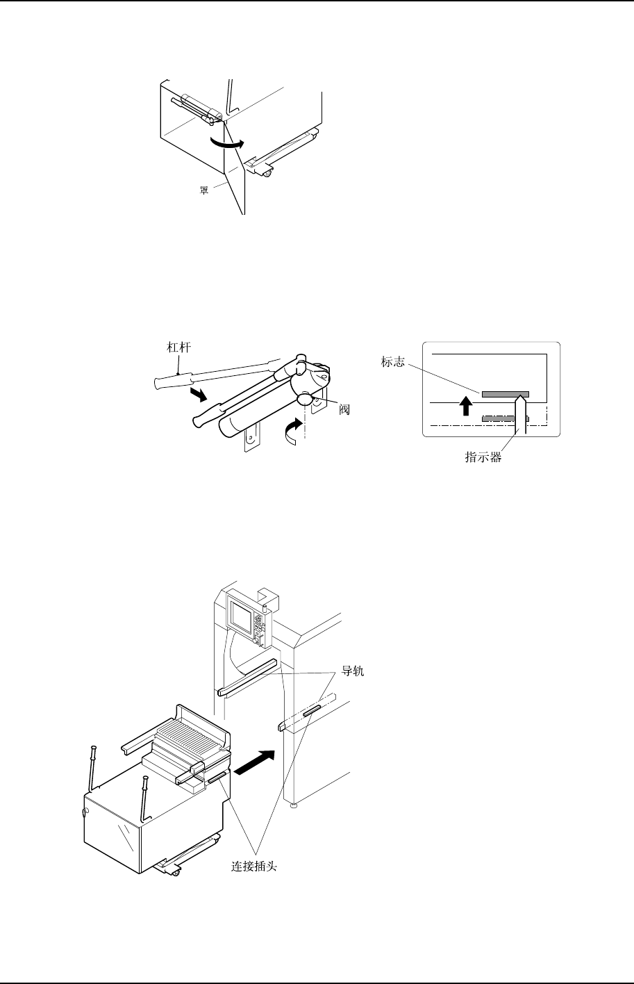 右旋起重器阀并关闭。开始上下压送杠杆。向上抬 PFU-3E 直至指示器前端到达侧面