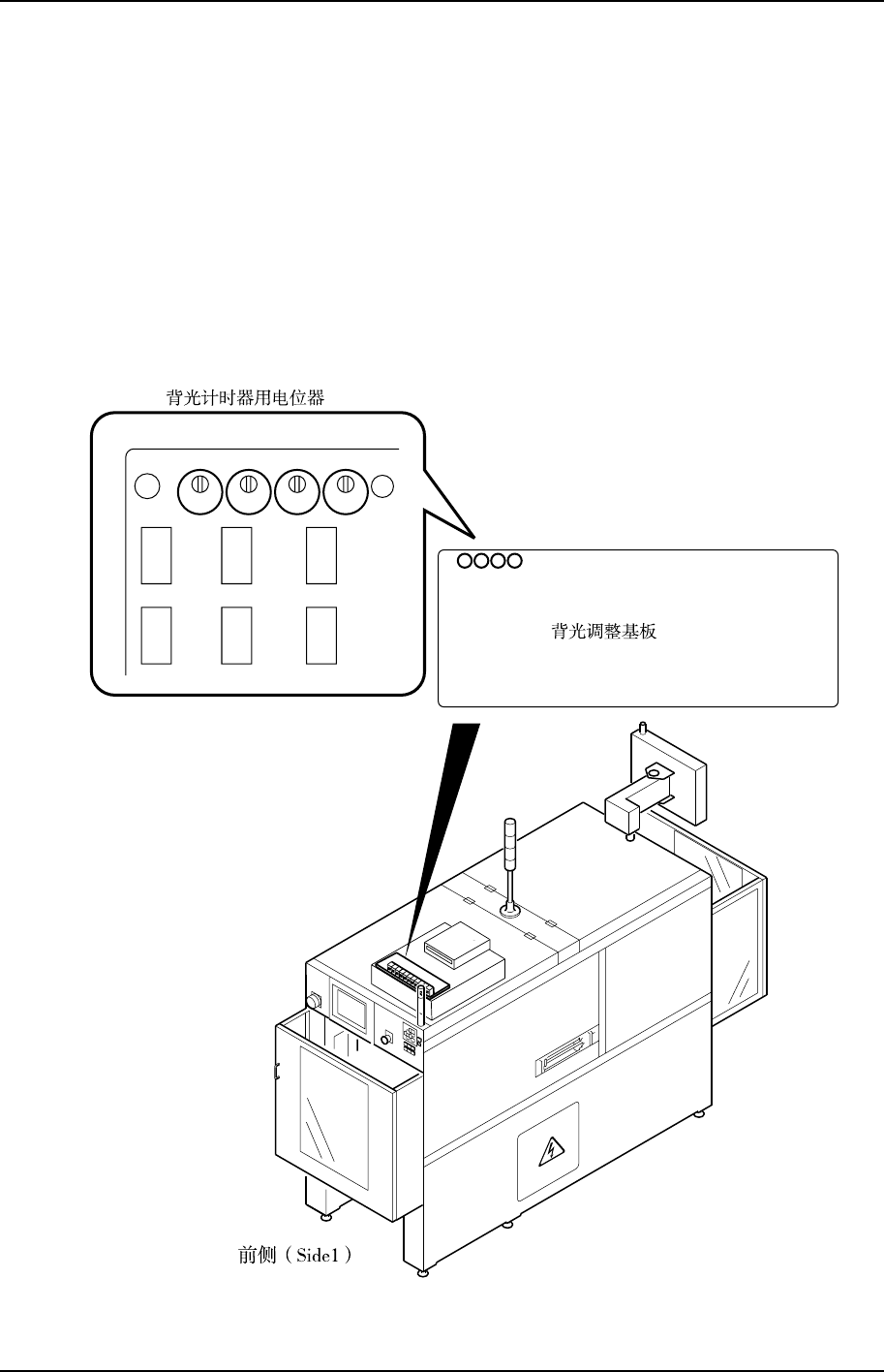 通过 I/O 操作打开背光时,要检查背光调整基板的相应指示灯是否能亮 5 秒钟。背光计时器