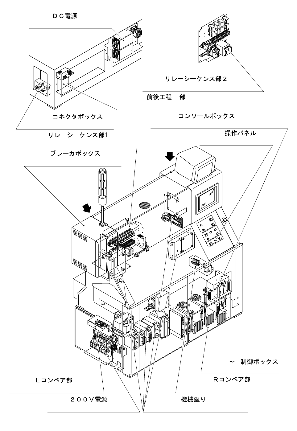 MODEL TDM-3000E-2 0210-001 7 全体図−2 UNIT LA YOUT-2 TDM-3000-2 A B VIEW"A" VIEW"B" Fig.8-1 Breaker Box Fig.8-14 Connector Box Fig.8-3 DC Power Supply Fig.8-4 Reray Sequence Section-1 Fig.8-5 Reray Seque…