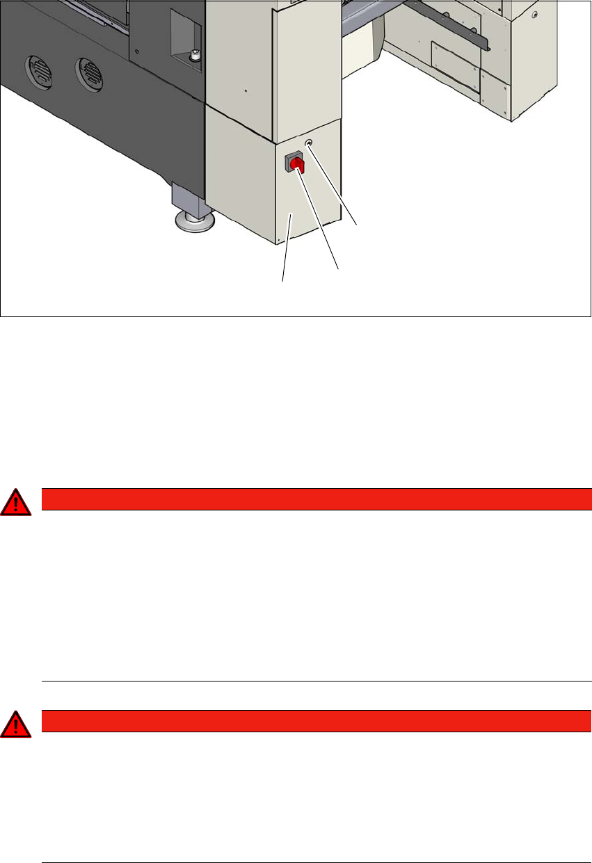 即便已将贴片机关闭,并断开了电源的插头连接,盖子下方的元件在一段时间内可能依