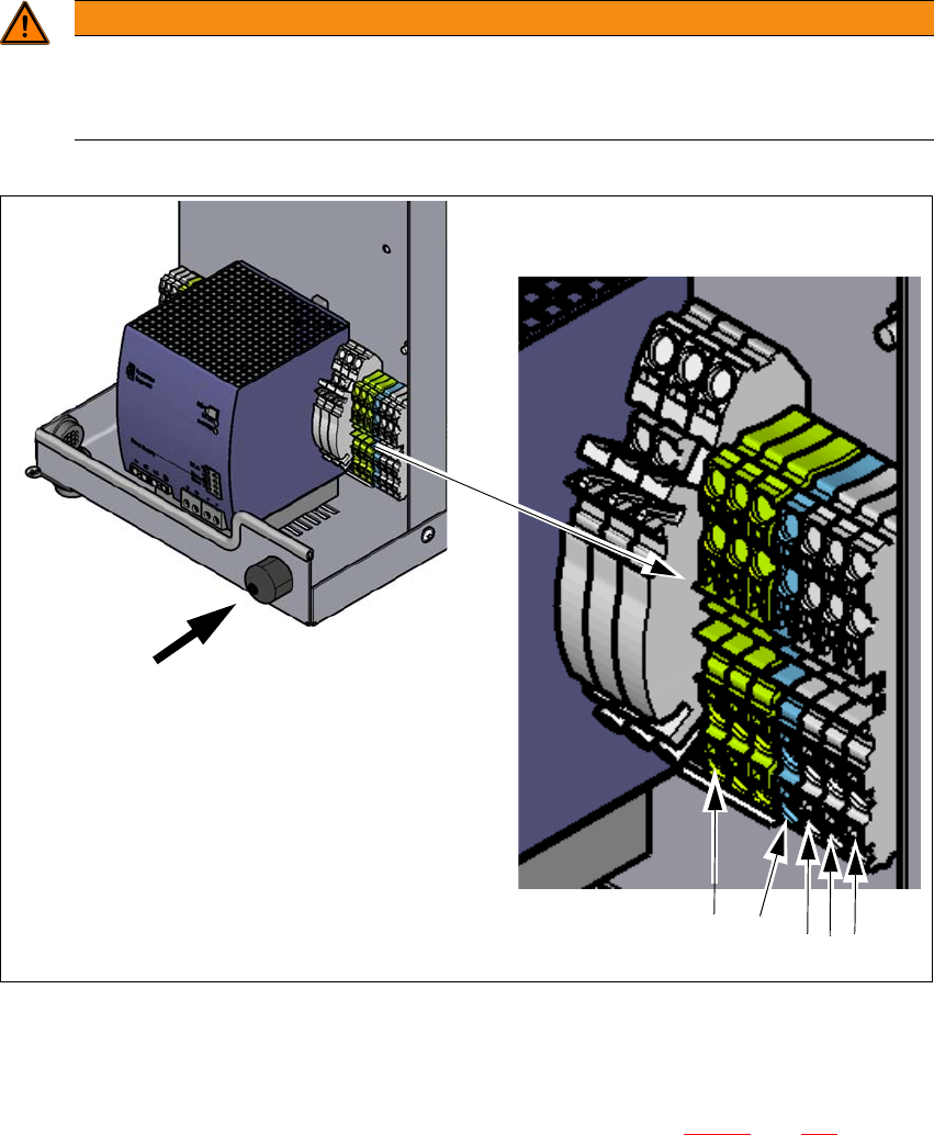 贴片机交付时无电源连接线。主电源连接线与供电单元内的电源连接端子 (X94) 相连接。