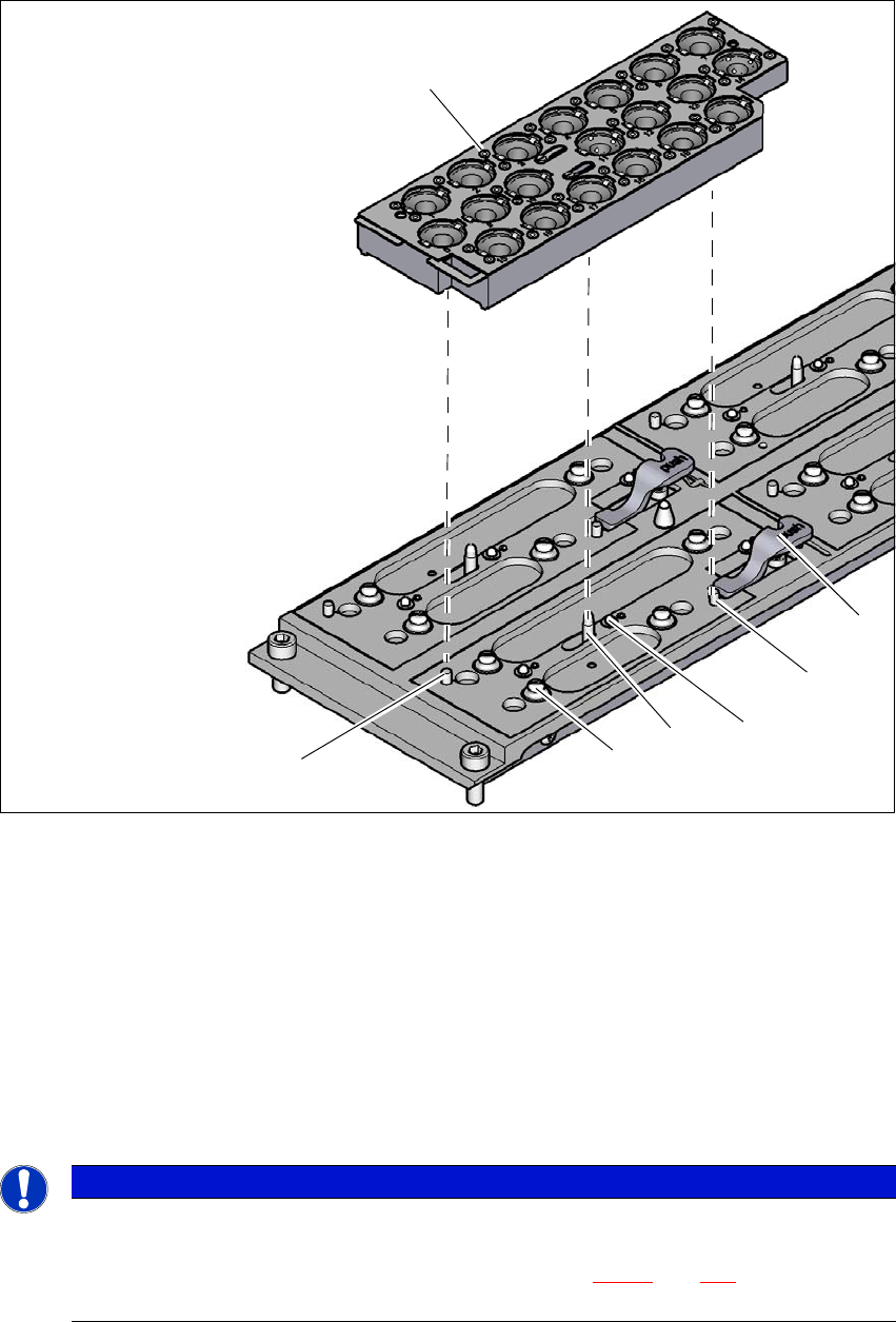插入前,对齐吸嘴盘,使对中销 (部件 2 和 6,图 6.1 - 7,第 279 页)滑入对中孔
