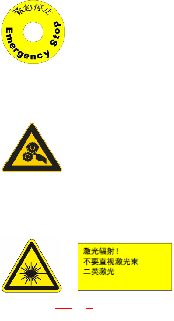 EMERGENCY STOP (急停)按钮上的警告标签