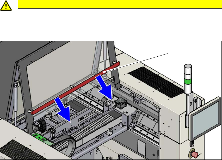 关闭保护盖时,不要将手伸入保护盖和贴片机面板间的缝隙中。