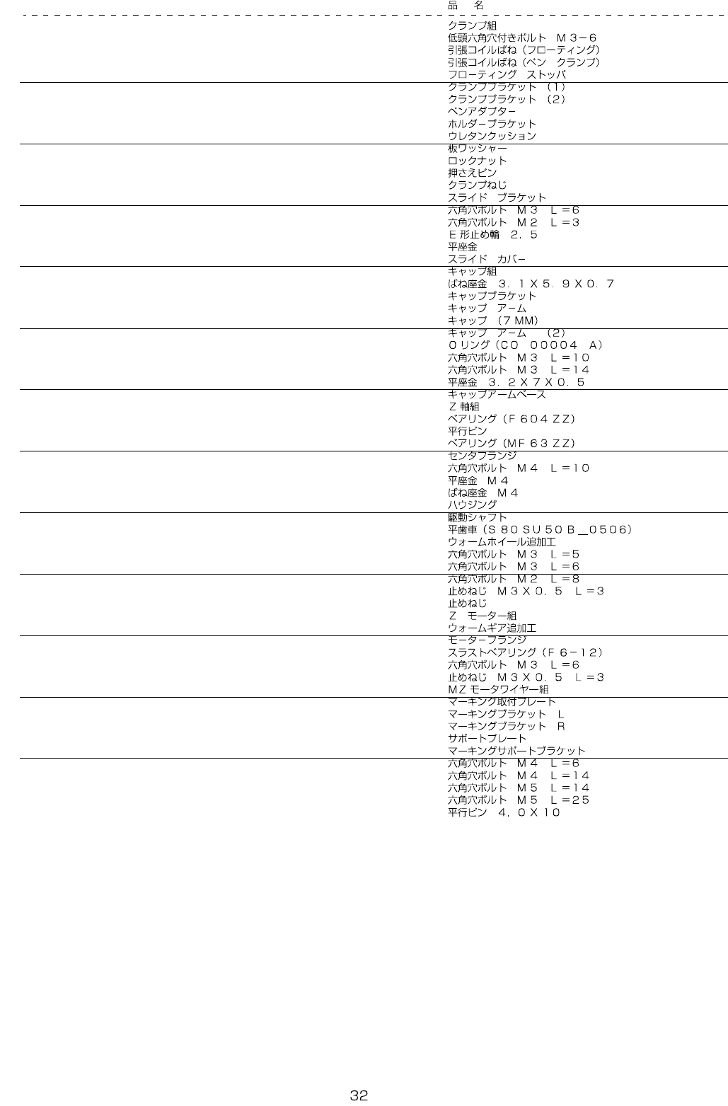 REF.NO NOTE PART NO D E S C R I P T I O N Qty