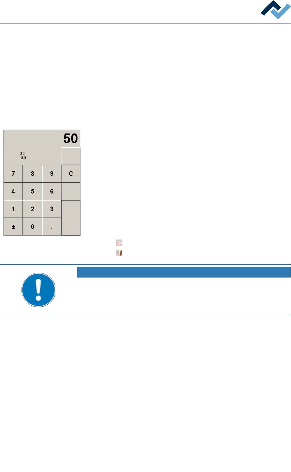 Values are always entered in the input fields of the dialogues via a numerical table.