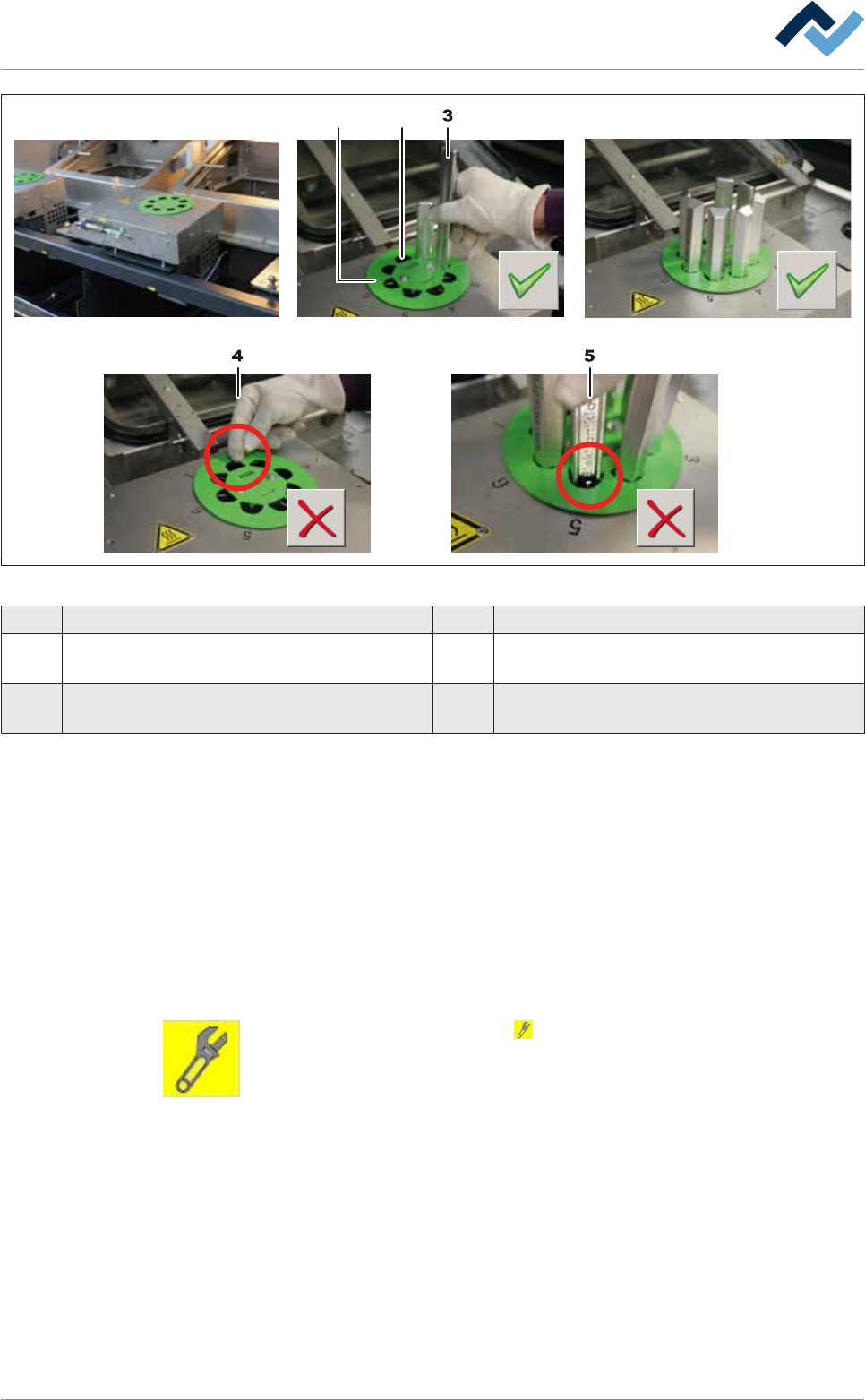 6|Function description 1 2 Fig.77: Fill the turret bar container 1 Coding disk 2 Discharge duct 3 Solder bar 4 Wrong: Do not insert solder bars in the discharge duct! 5 Wrong: Insert exclusively suitable solder bars i…