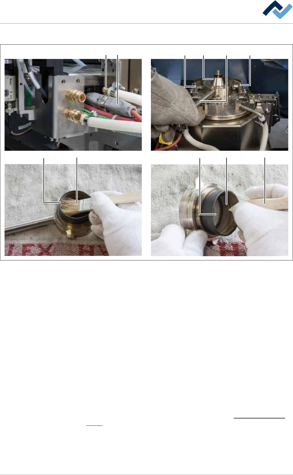 e) Clean the gassing ring (8) and the gassing cap with a brush.