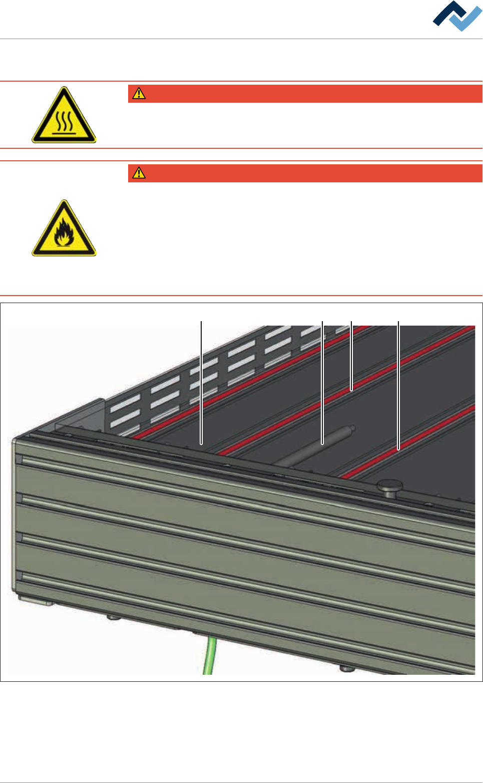 Risk of burns from hot surfaces!