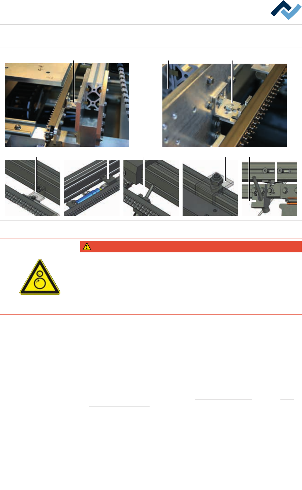 8|Service and maintenance 8.7.9 Check the entire conveyor system 1 1 1 1 1 1 1 1 1 Fig.118: Holders on the conveyor system DANGER Risk of injury due to gloves entrapment! ü When working on the running conveyor system:…