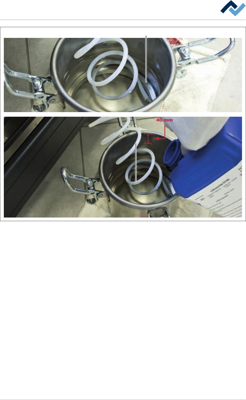a) Fill with flux material (maximum capacity 2 litres) up to 40mm below the edge.