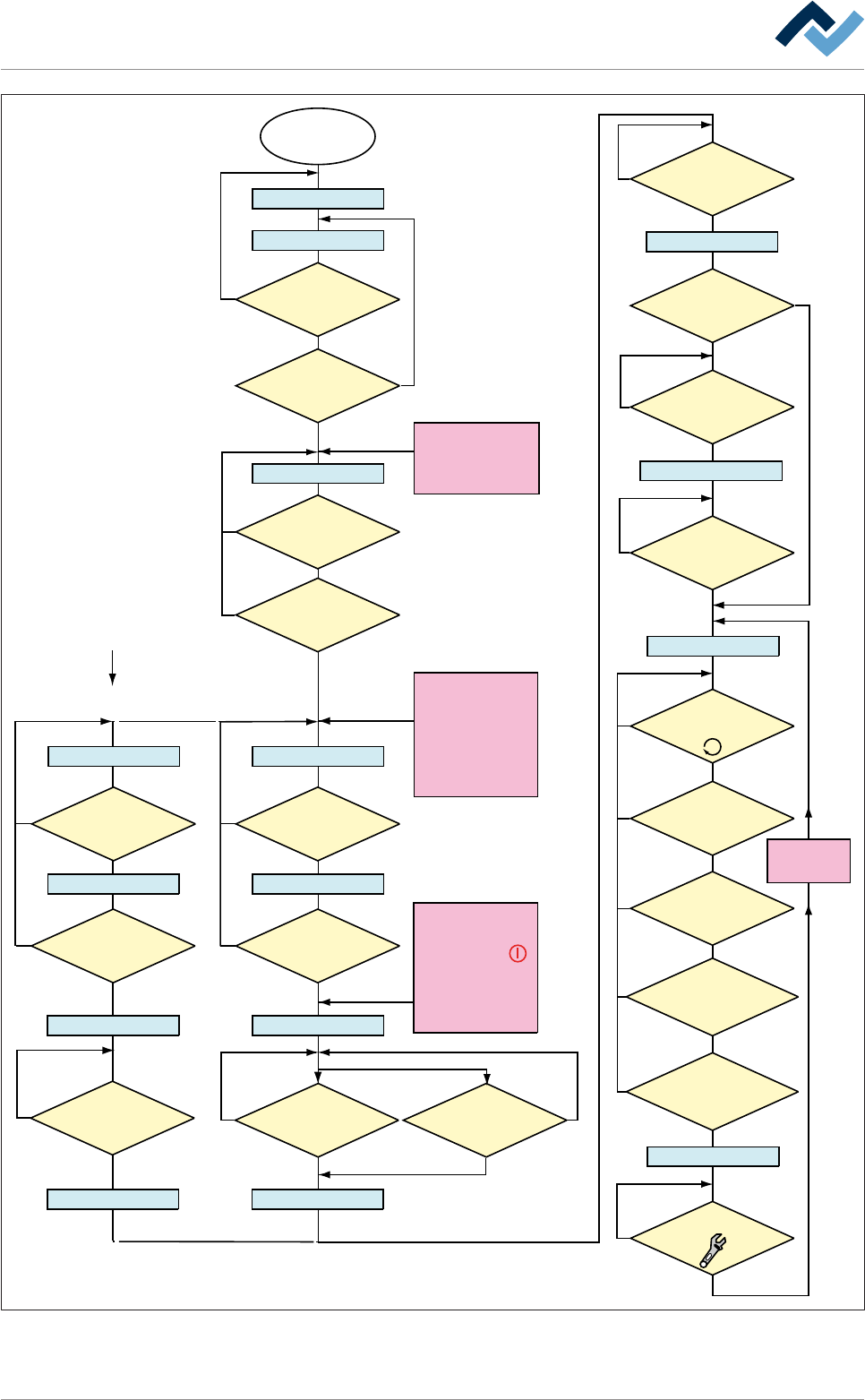 Flussdiagramm: Die blauen Rechtecke definieren die Betriebsarten der Maschine. Diese Betriebsarten