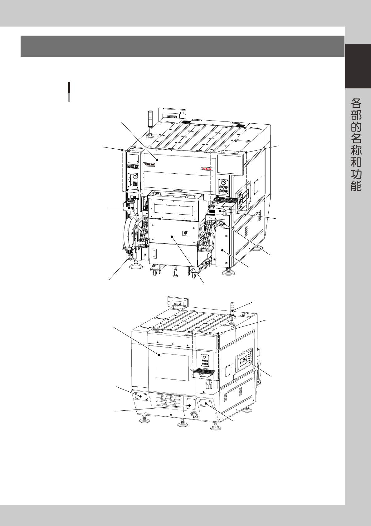 本章节,介绍混合式贴片机主要部分的名称和功能。安装完毕的标准混合式贴片机的构成,如下图所示。