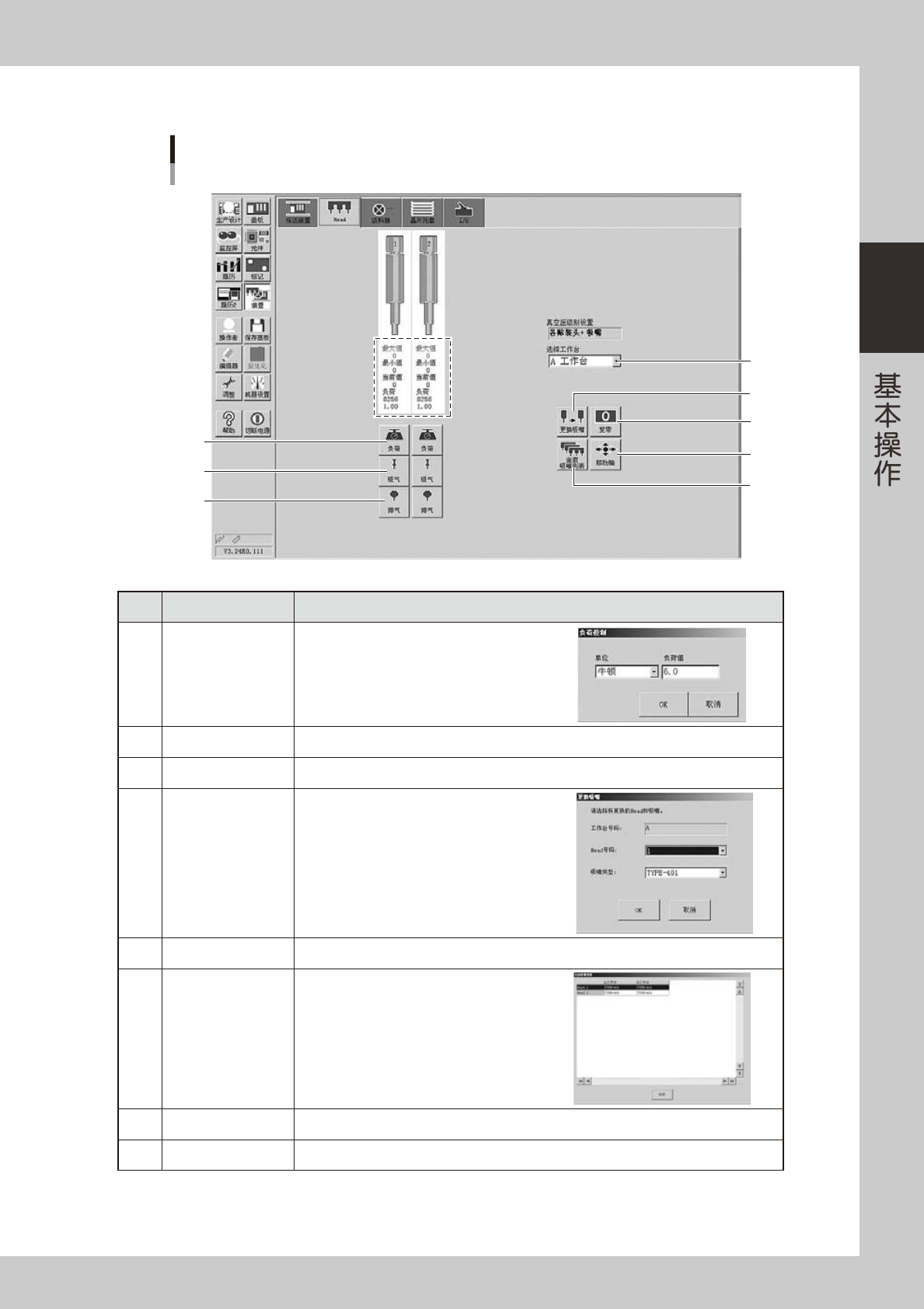 排气 使各贴装头的排气开 / 关。