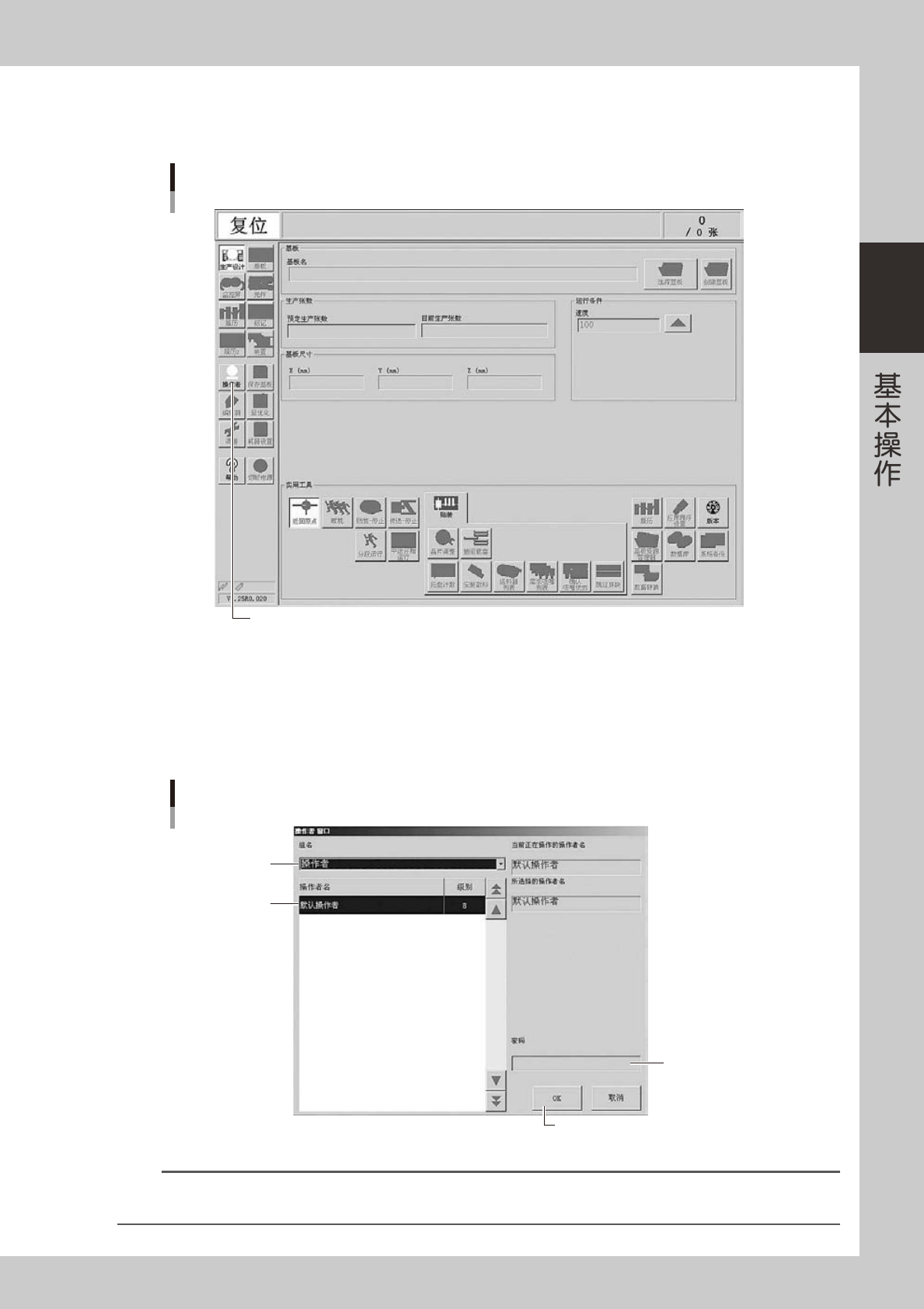 即只允许操作基本内容。级别可根据需要变更。此外,通过设定密码和操作级别,还可以增加操作者或指定操作许可项目。