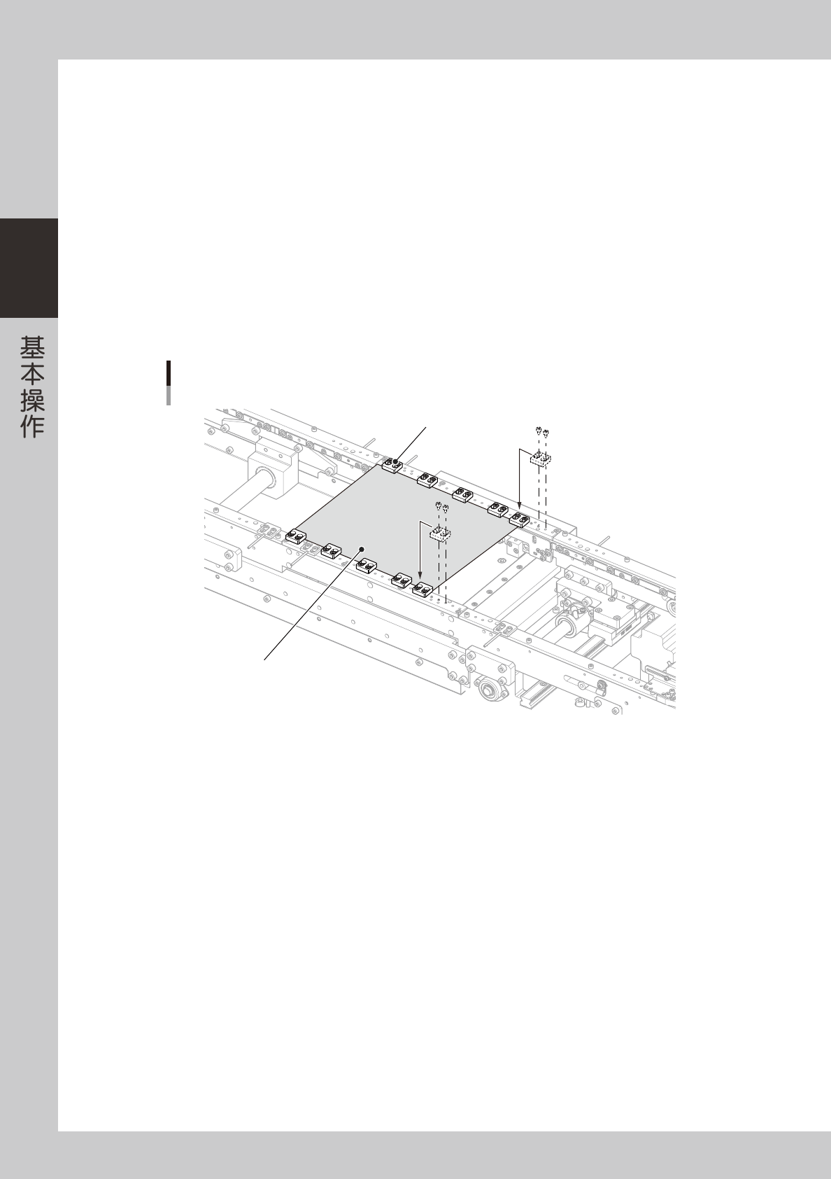 按「传送装置」画面的 [ 顶板 ] 按钮,使顶板上升,并确认基板的固定状态。